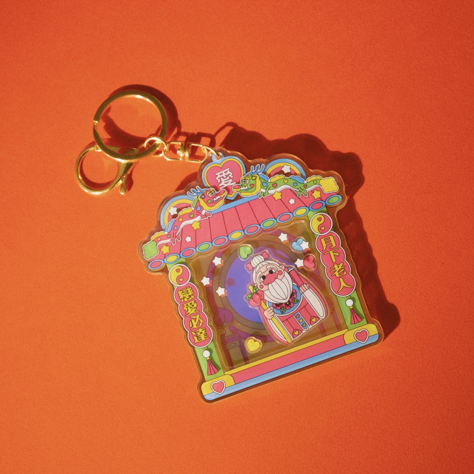 A charming mini temple keychain featuring the legendary Yuelao!