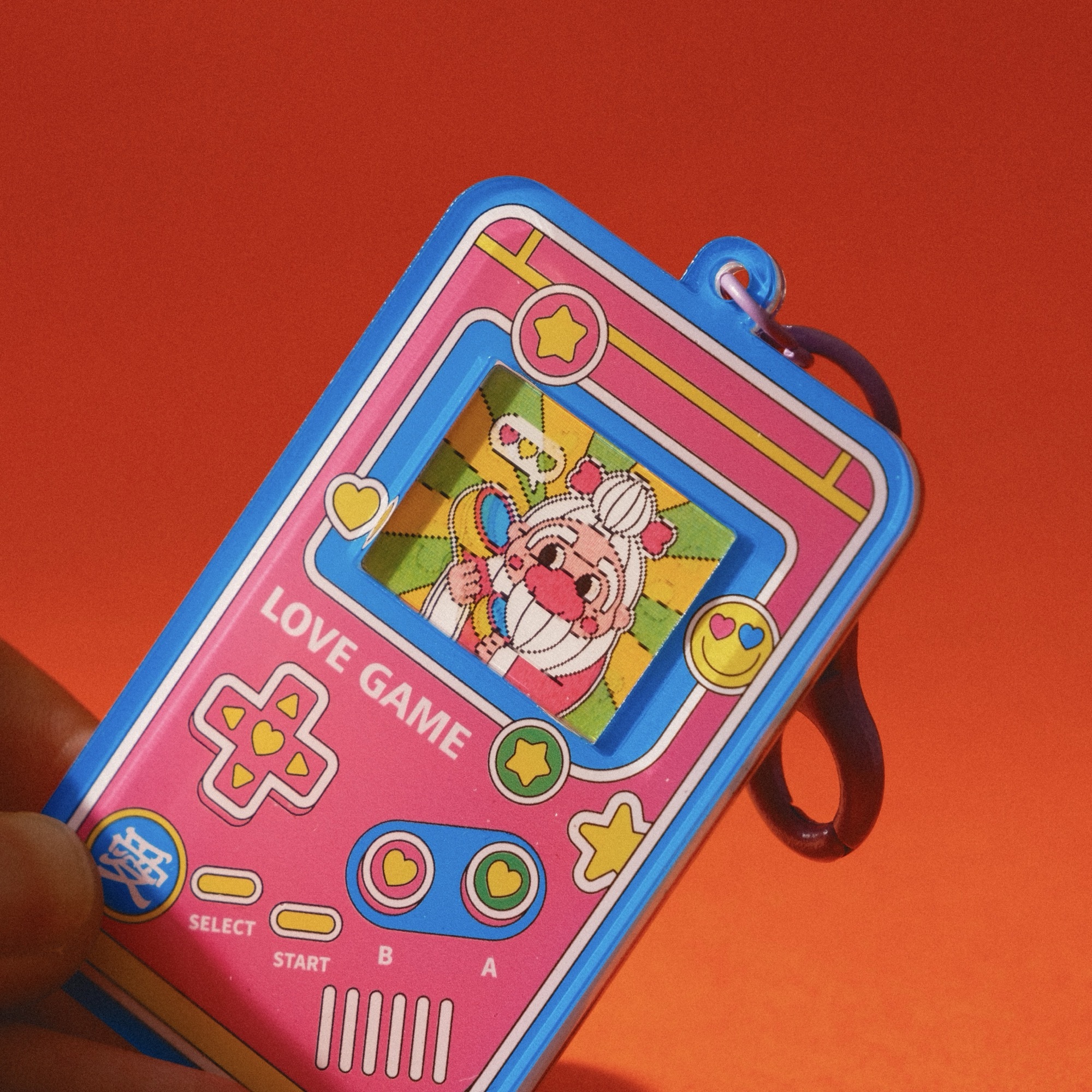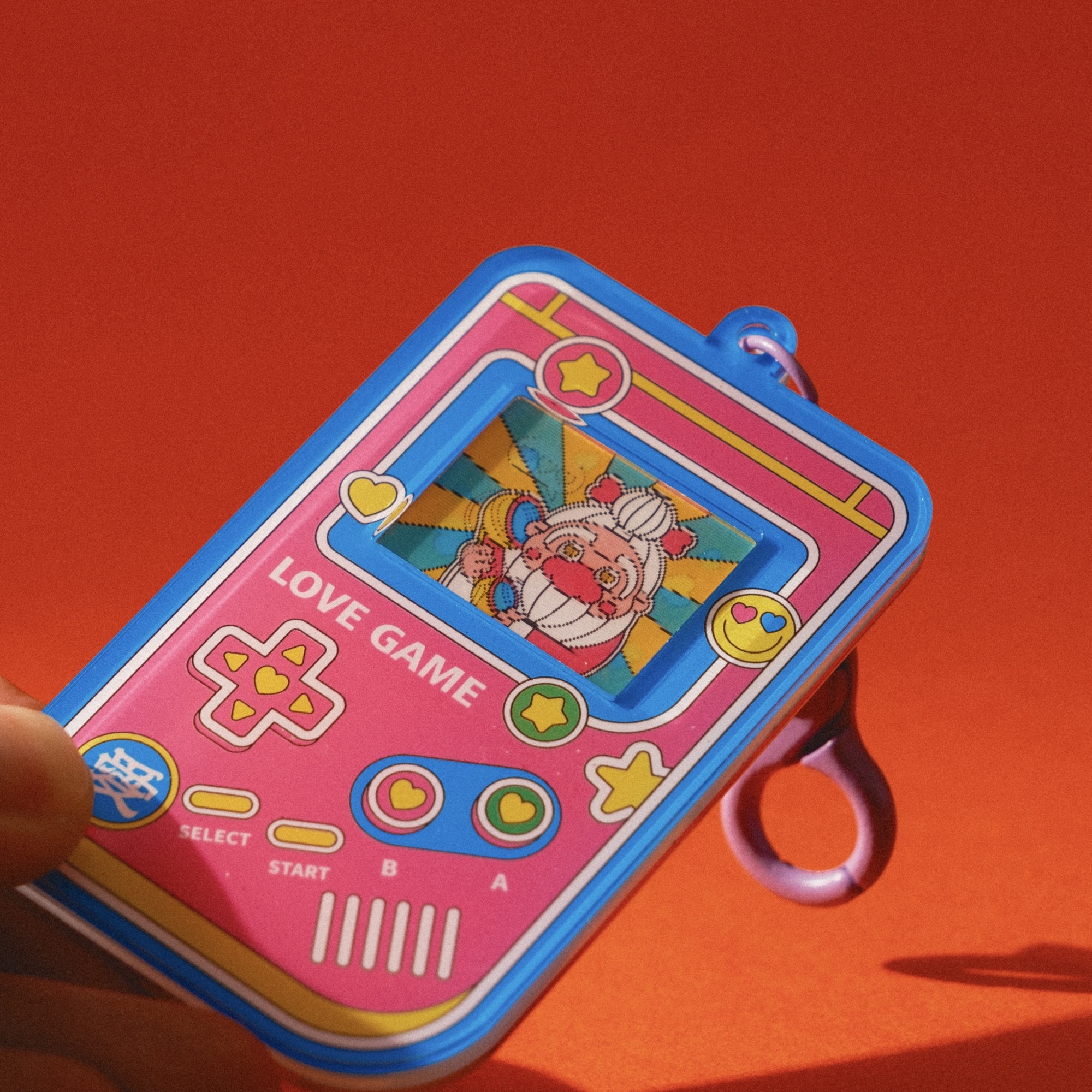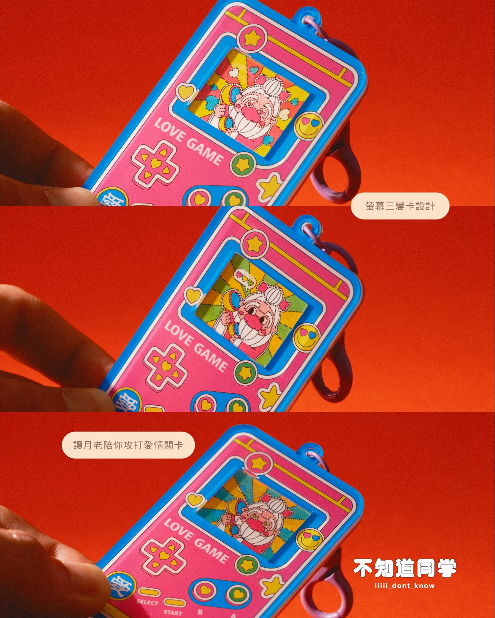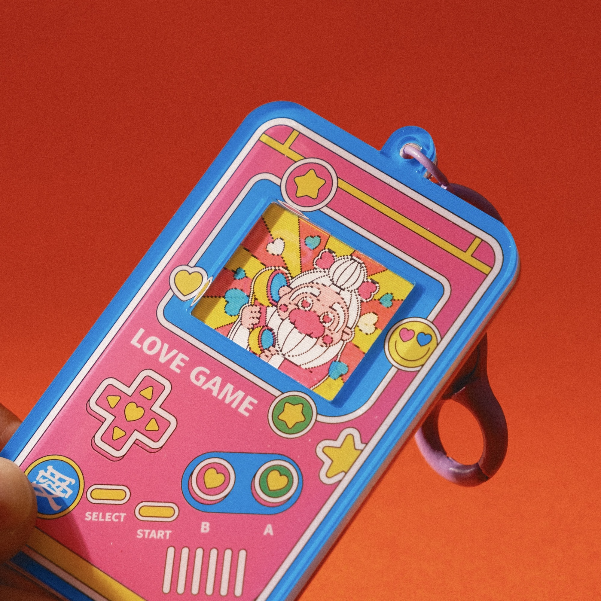 This handheld console keychain features a lenticular screen—change your angle, change the scene.
